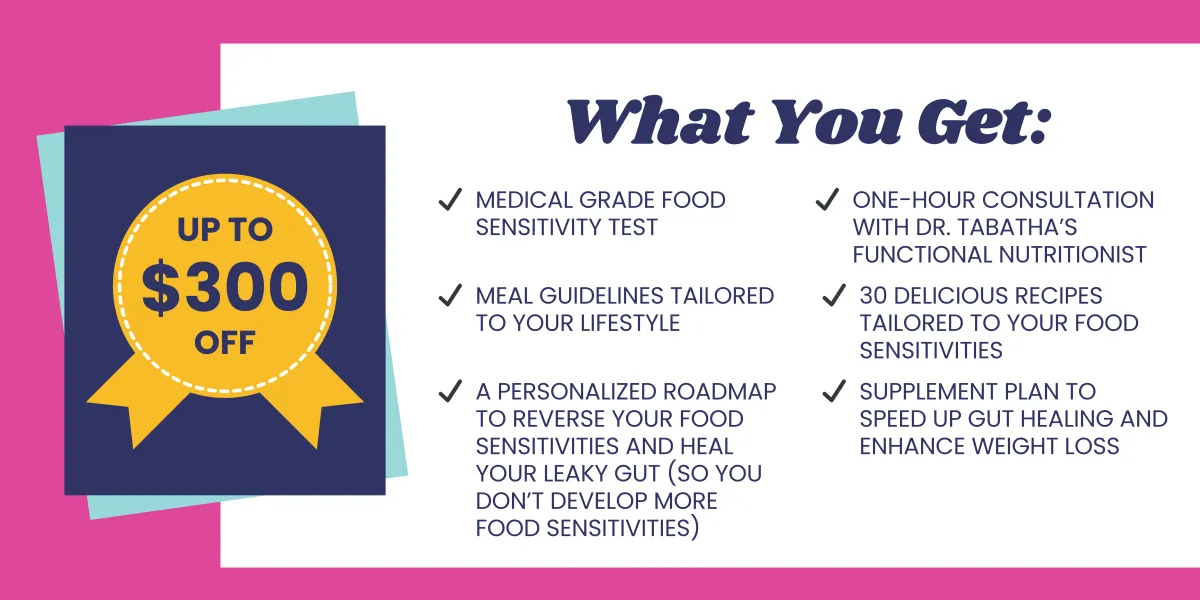 Ashlee is now Dr. Tabatha’s Health Coach, but she used to be a patient. Before her food sensitivity test and gut healing program, Ashlee suffered from anxiety, depression, psoriasis, brain fog, and severe bloating after each meal. She was a chronic under-eater and cardio addict but still kept gaining weight!